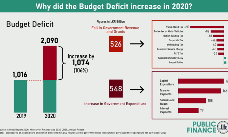 On the flip side, Covid-19 and the Organic Farming fiasco caused an increase in government expenditure by nearly 550 million LKR. This included things like Covid relief assistance through the State Ministry and recruitment of 160,000 unskilled an unemployed graduates. Together, the budget deficit rose by over 100% between 2019 and 2020.