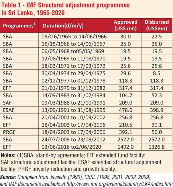 The International Monetary Fund and Sri Lanka have had extensive dealings since the mid-1960s. In the past 56-year period, approximately 33 years have been spent under the macro-economic management of the IMF, as shown by the graph below. It is to be noted that the IMF fully distributed the agreed funds under 12 of these 16 agreements, with Sri Lanka failing to meet the conditions for the full disbursement of the remainder.